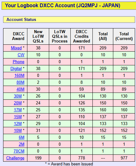 ペーパーQSL申請中が+17ありますので、年内中に1000チャレンジに到達見込みです。