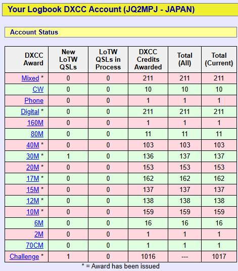 た。DXCC総数は211エンティティ、